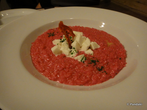 粉紅色的意大利飯,, 中間的是水牛芝士
