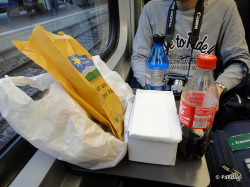 肚子餓的我們決定買東西在火車上吃